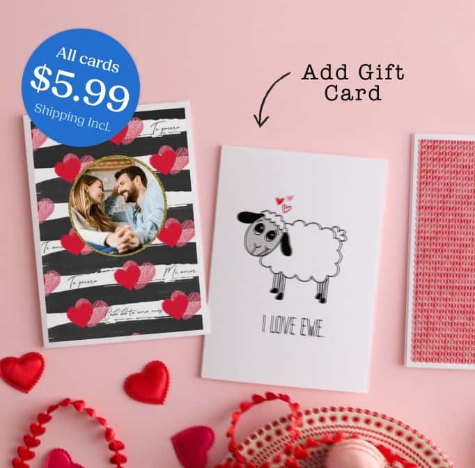 Personalize our custom Valentine’s cards, and we’ll print, stamp & send them.